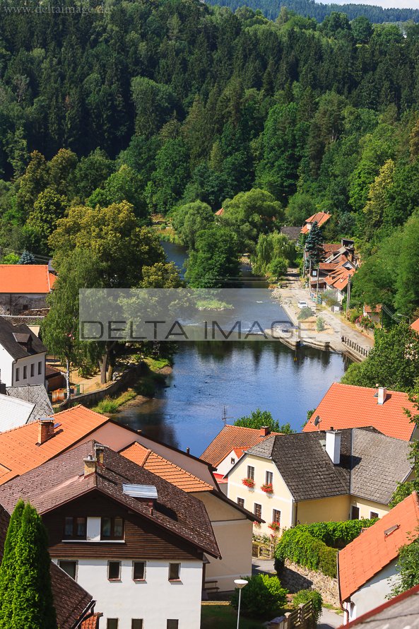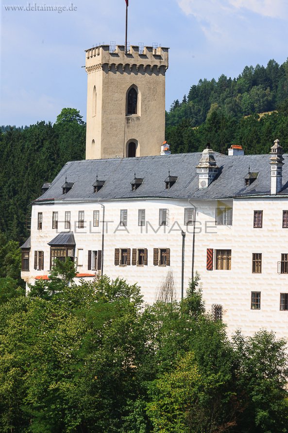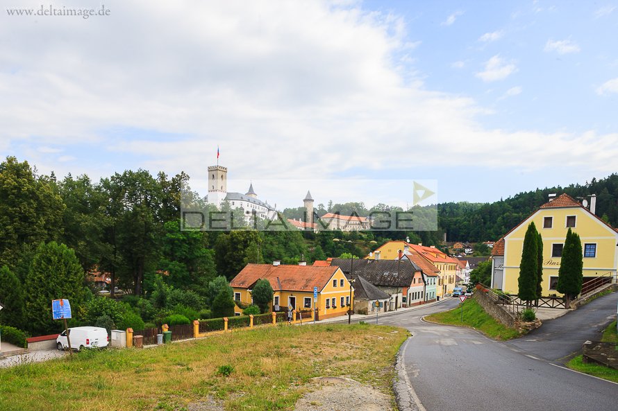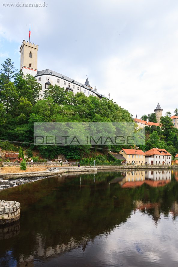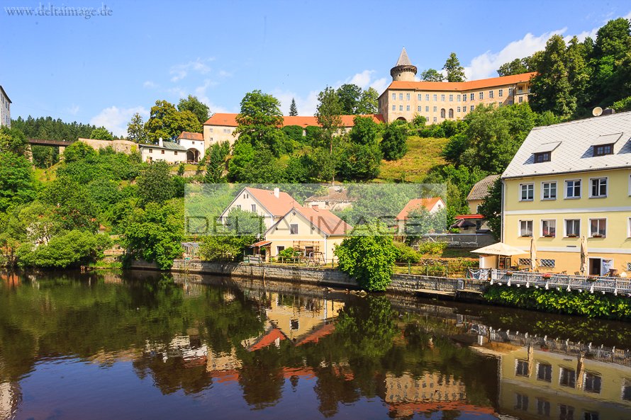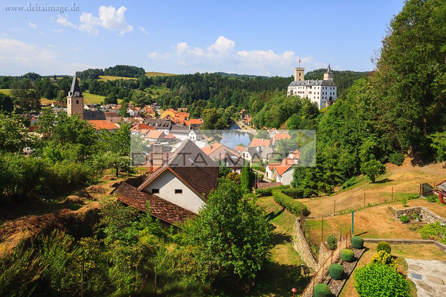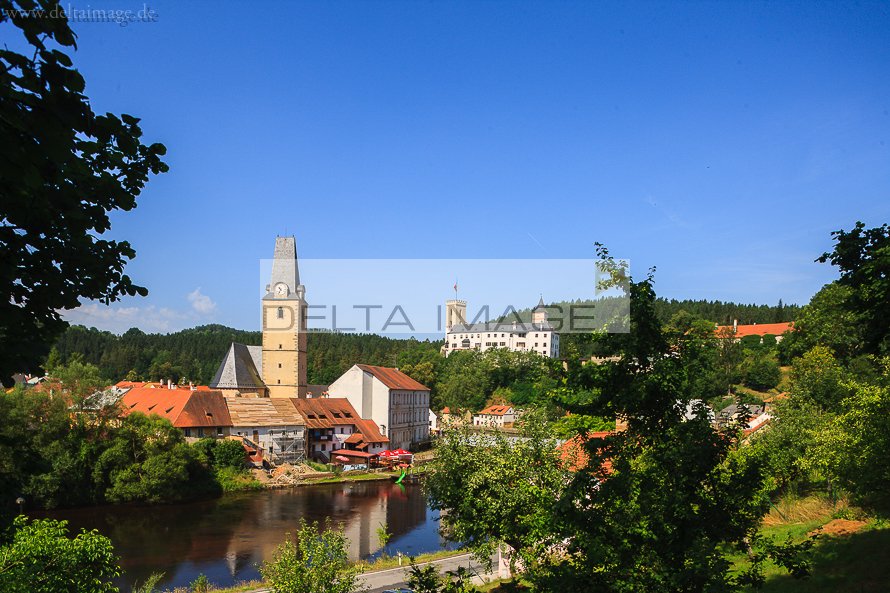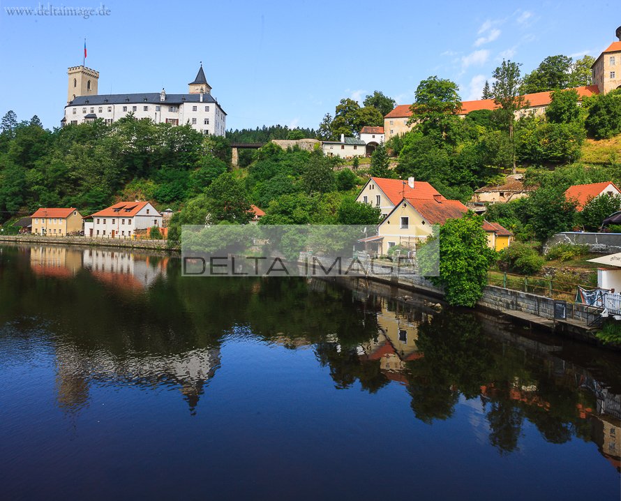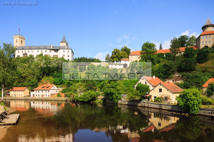 Hoch über der Moldau tront die Burg Rožmberk nad Vltavou als Schutz der Landesgrenze nach Österreich, des Handelsweges entlang der Moldau und der Brücke über der Moldau im gleichnamigen Ort zu Füßen der Burg.