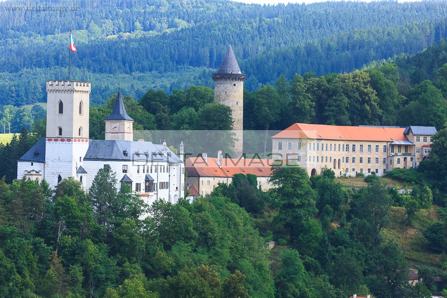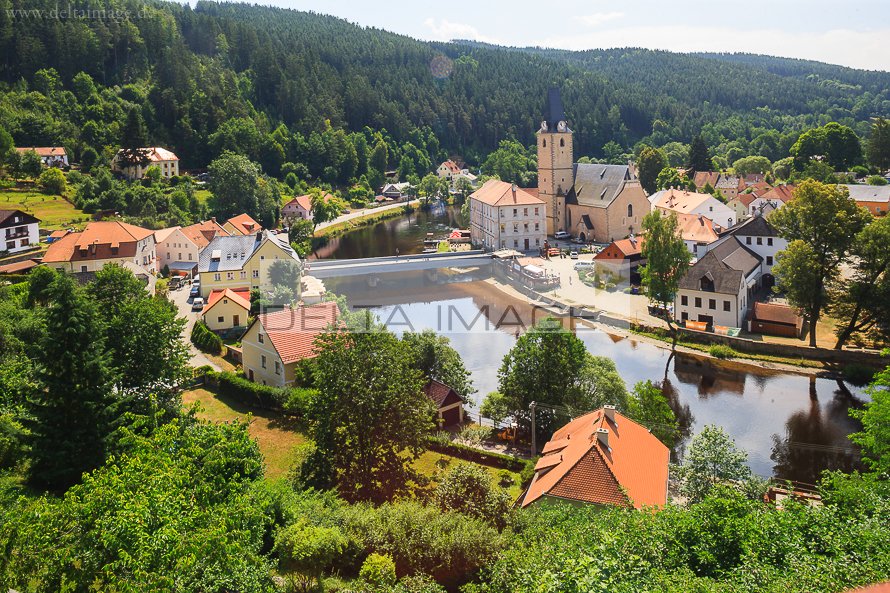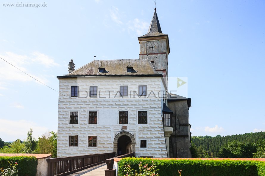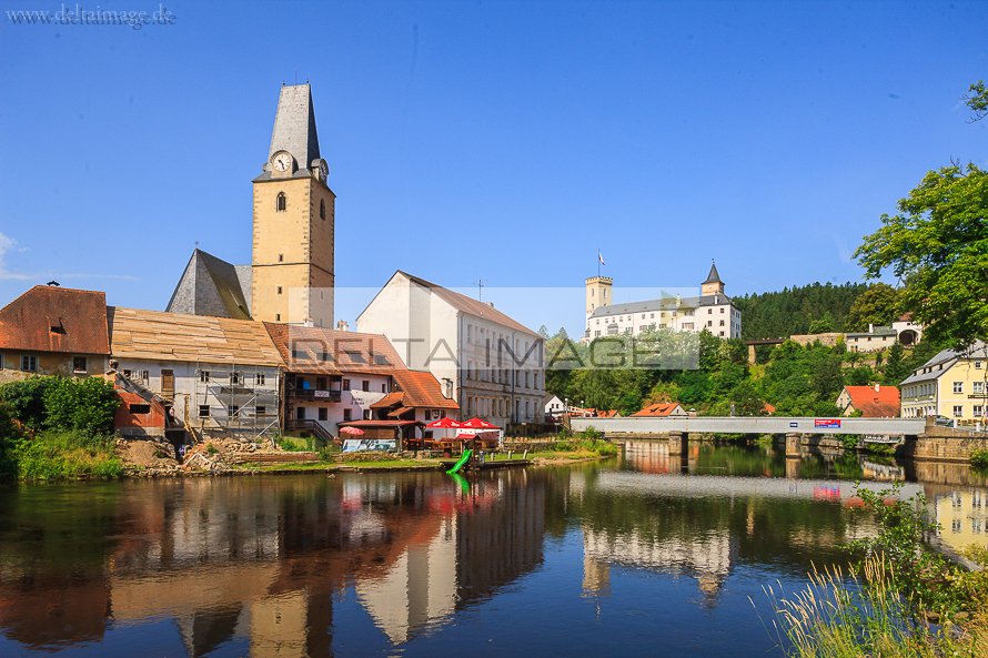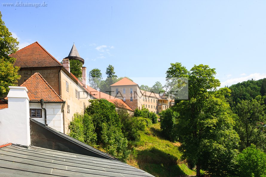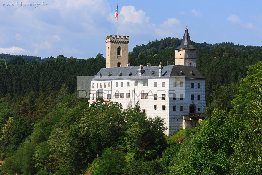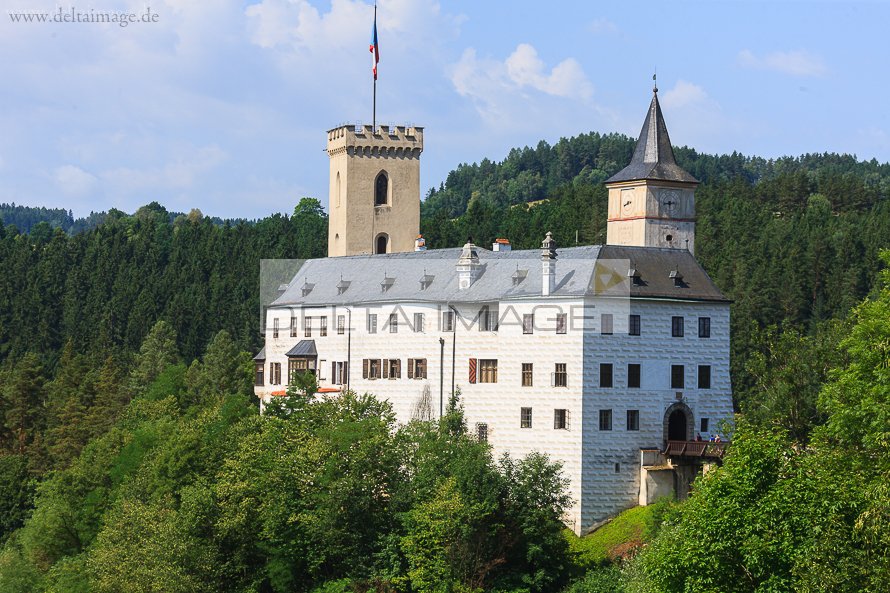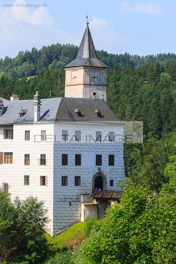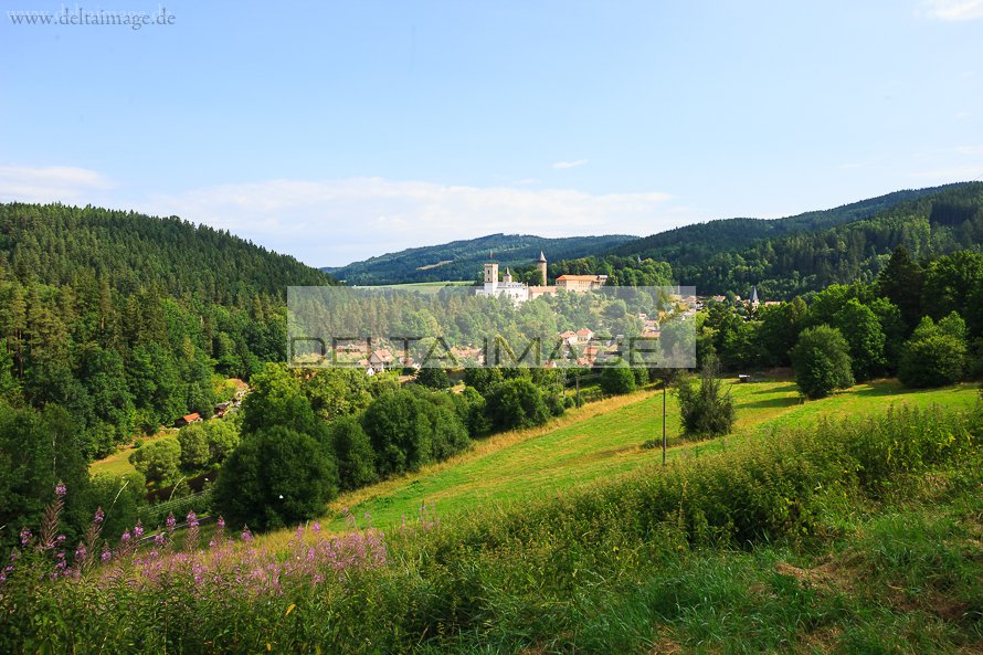 Hoch über der Moldau tront die Burg Rožmberk nad Vltavou als Schutz der Landesgrenze nach Österreich, des Handelsweges entlang der Moldau und der Brücke über der Moldau im gleichnamigen Ort zu Füßen der Burg.